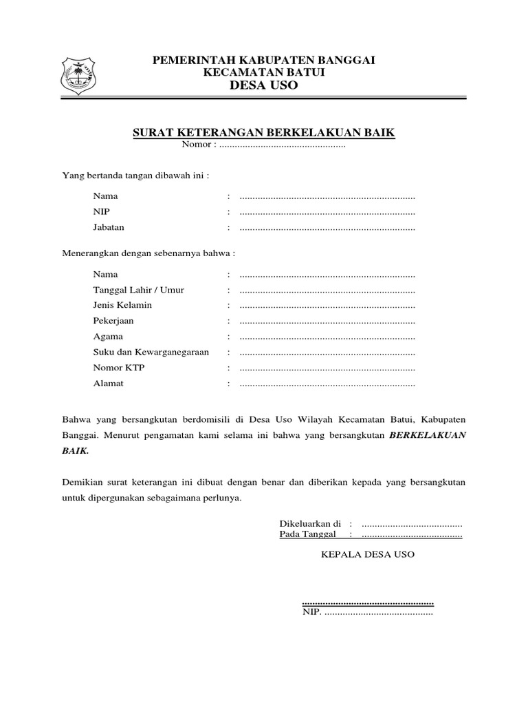 Informasi surat keterangan berkelakuan baik dari desa.docx Ada 15 halaman surat keterangan berkelakuan baik dari desa ukuran Folio 2.6MB. Surat kelakuan baik. doc surat keterangan kelakuan baik riswandi chandra kirana academia edu. format contoh surat keterangan kelakuan baik dari kepala desa format administrasi desa Lihat juga soal tentang keterangan serta pahami materi surat keterangan berkelakuan baik dari desa