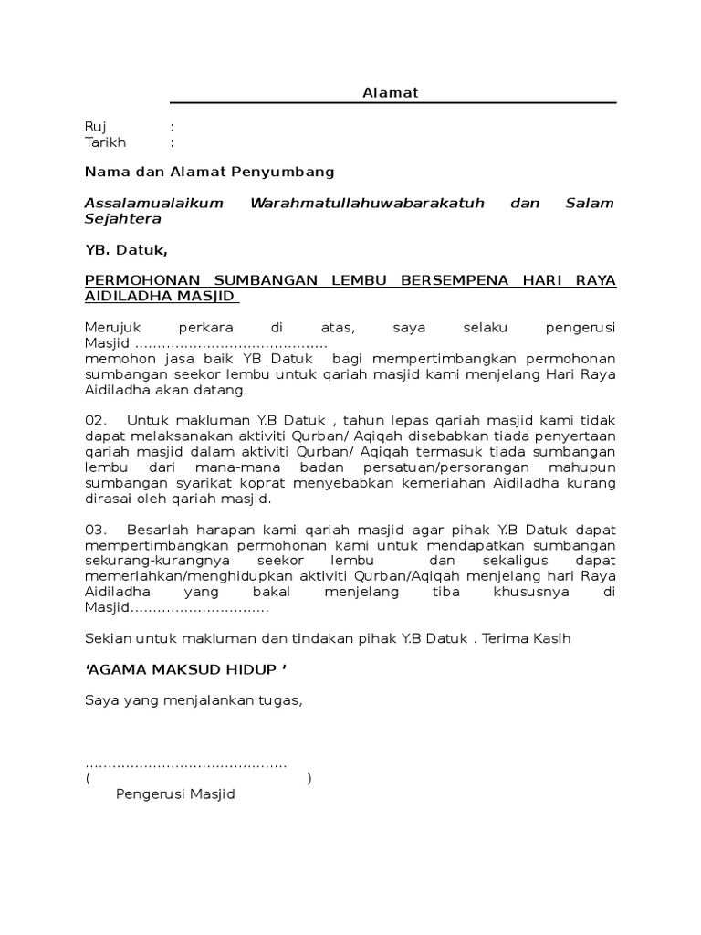 | Lihat Contoh Surat Permohonan Sumbangan Hari Raya Contoh Surat |