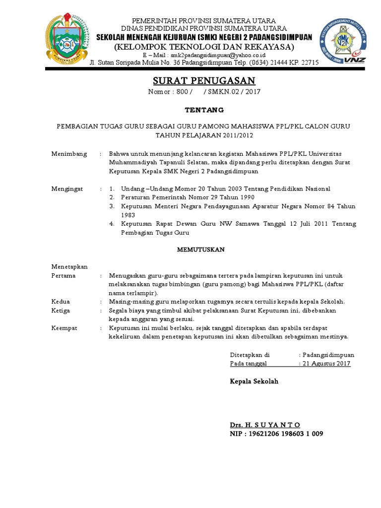 | Lihat Contoh Surat Tugas Guru Pamong Contoh Surat |